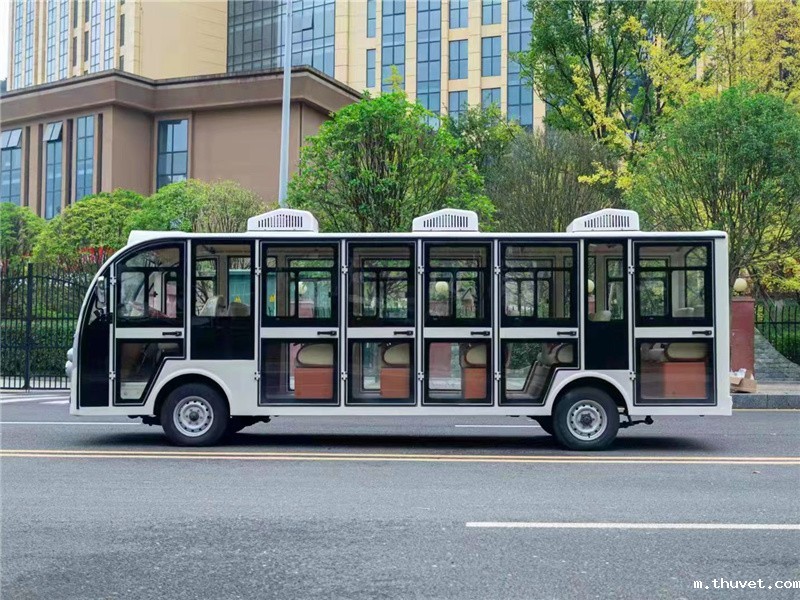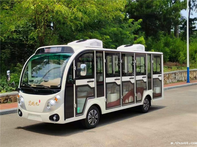 使用场景:17 座封闭燃油观光车具备载客多、舒适安全的优点。适用于景区、工业园区、机场等场所,能为乘客遮风挡雨,提供便捷的观光体验,满足多人出行需求。